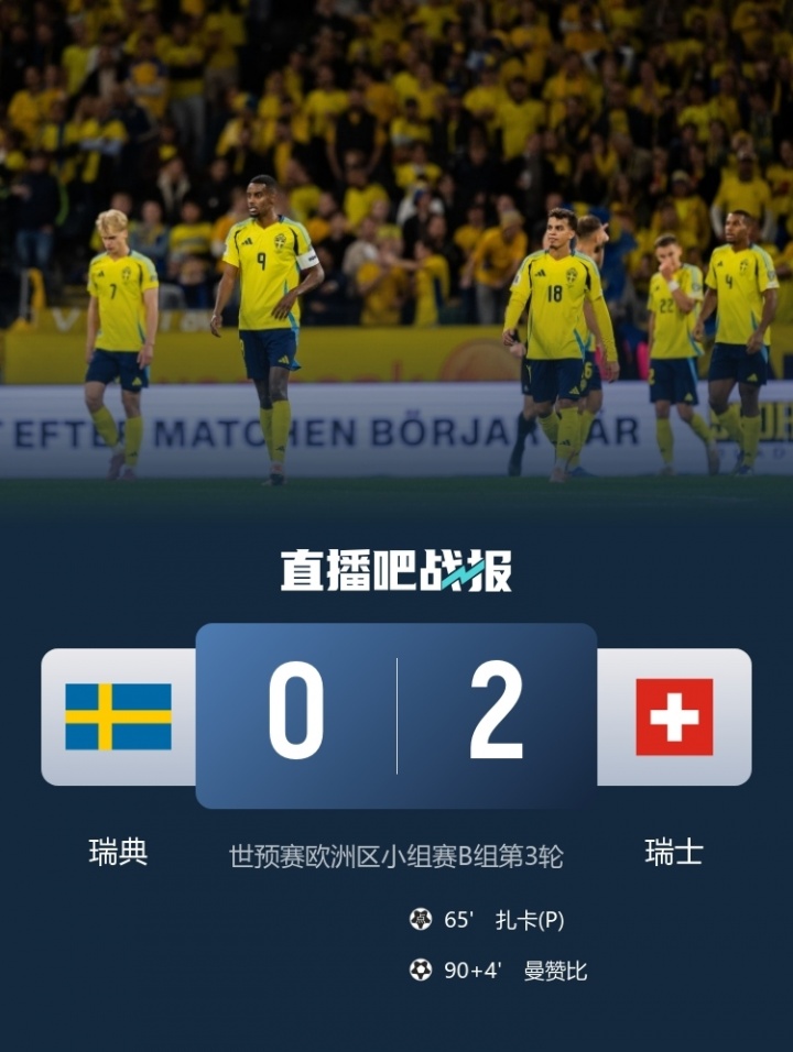 世初赛欧洲区小组赛B组第3轮,瑞典0-2不敌瑞士,遭受三场不堪。