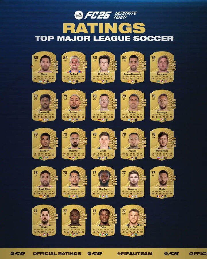 09月03日讯 FC26官方公布好意思职联球员才调值排名,梅西以86的才调值位居第1!德保罗84排第2。
