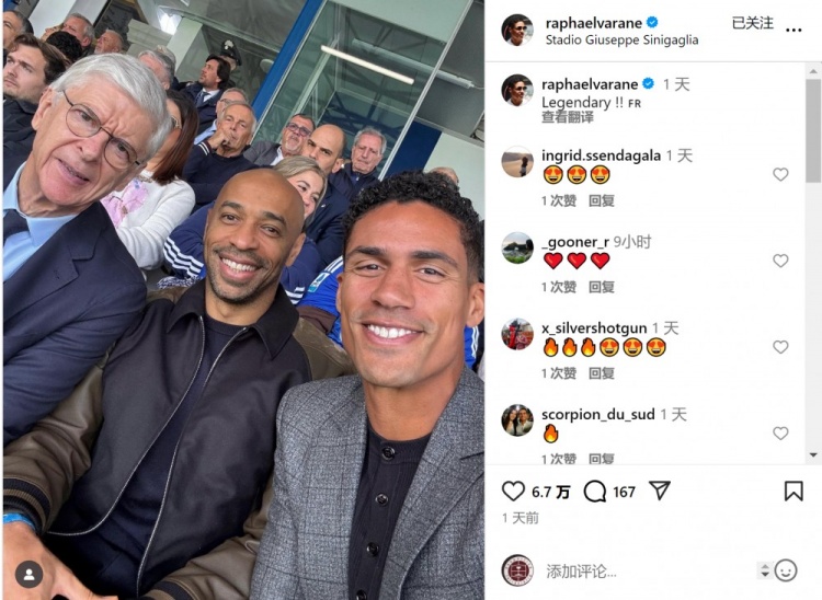 意甲第7轮比赛,科莫主场2-0打败尤文。当今担任科莫俱乐部董事的瓦拉内与温格、亨利悉数不雅看比赛,瓦拉内社媒晒出合照,配文:“神话!”