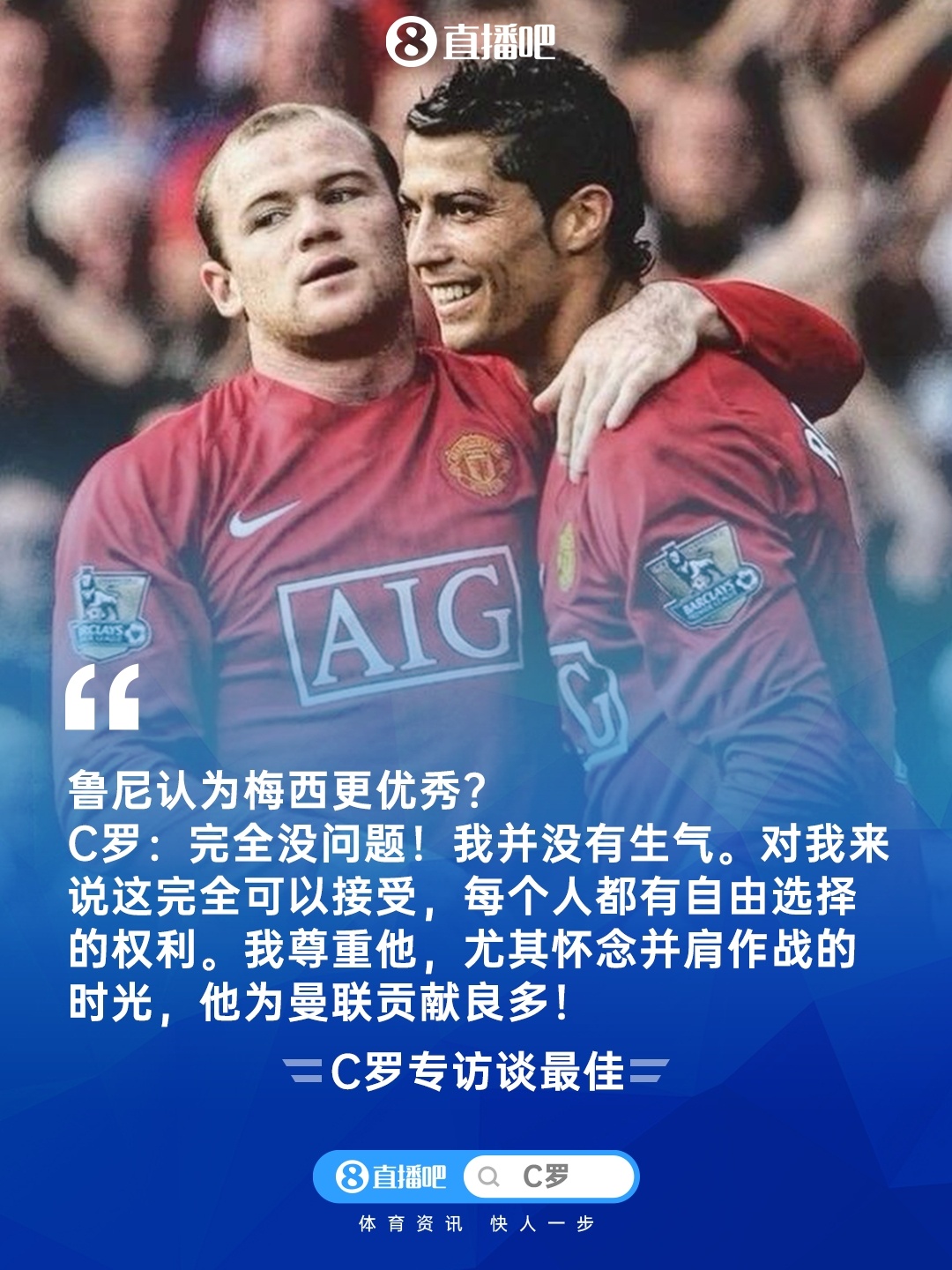 摩根:韦恩·鲁尼,你的老队友上周说他并不敌视你(尽管有东谈主那么说),他其实很心爱你,称你为天才。他说你们的关系比外界遐想的要亲密,但他仍然认为梅西更优秀。
