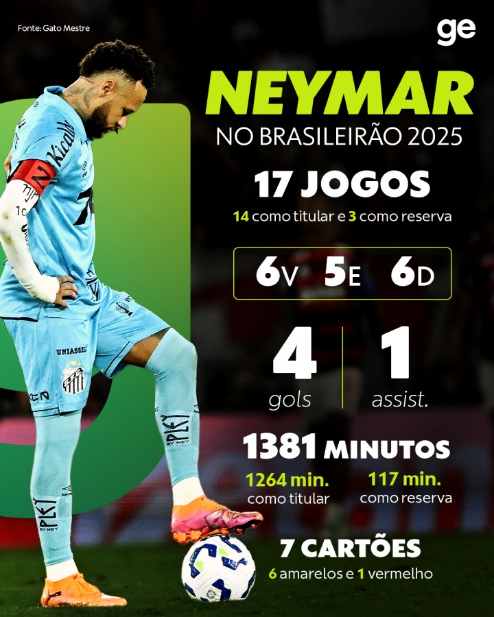 在展望2025年报销后,两年来内马尔缺席的天数跨越600天。内马尔自追思桑托斯后,17场巴甲进4球,吃到5张黄牌。