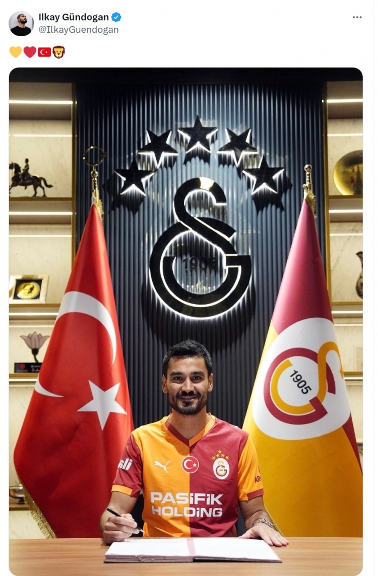 9月3日讯 曼城中场京多安免签加盟加拉塔萨雷,京多安更新社媒动态,晒出签约的像片。