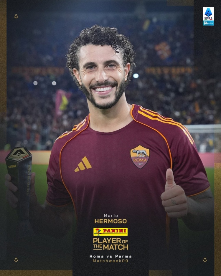 在本场比赛为罗马头槌立功的埃尔莫索,也在赛后被意甲官方评比为本场比赛最好球员。