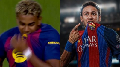 有球迷指出,亚马尔此举或是在致意其偶像/前辈,内马尔此前的庆祝神志。而本赛季早些时分,亚马尔在进球后作念出的是“加冕为王”,为我方带上金冠的庆祝行动,有报说念称这是对体坛另一位传闻勒布朗-詹姆斯的致意,也展示着亚马尔成为足坛新王的贪心。