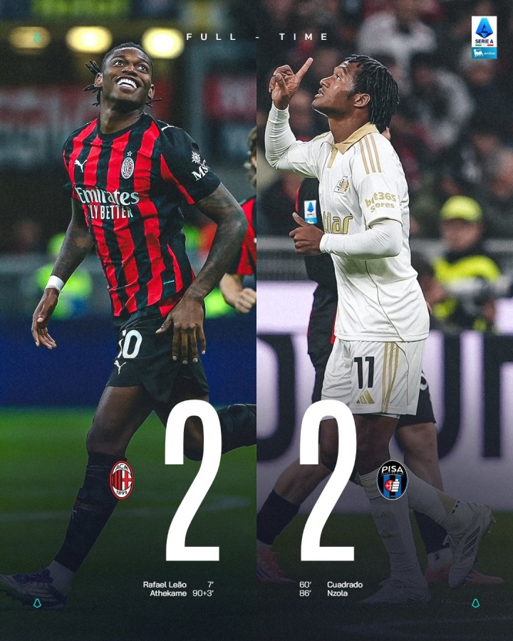 10月25日讯 意甲第8轮,AC米兰2-2战平左迁区的比萨,近3轮比赛1胜2平:0-0尤文、2-1佛罗伦萨、2-2比萨。