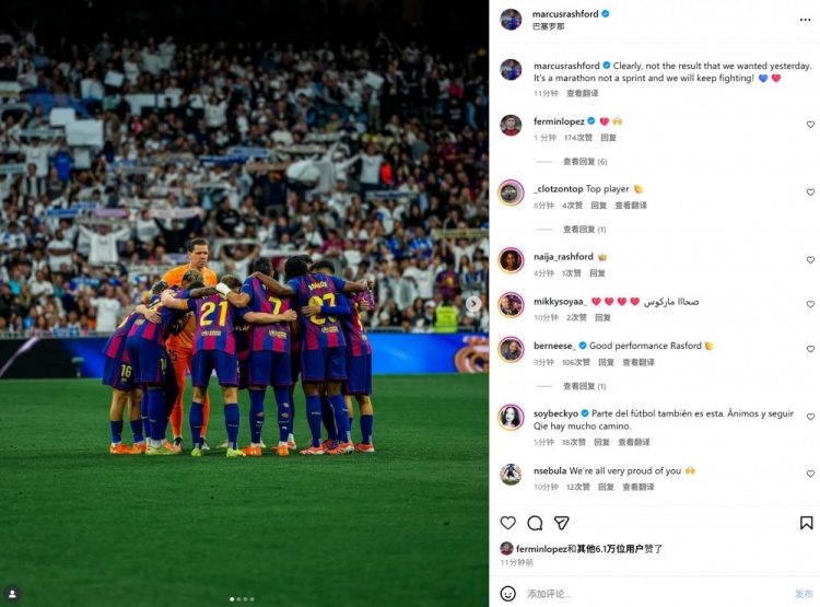 本场比赛拉什福德首发出场送出助攻,赛后他也在社媒晒出全队合照,配文写说念:“昭彰昨天的比赛效果不是咱们思要的,但联赛是一场马拉松而不是短跑,咱们会赓续拼搏!”