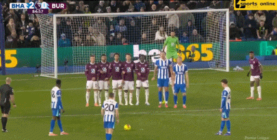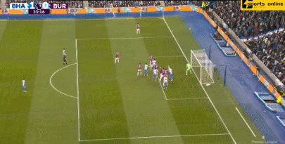 第33分钟,布莱顿前场左侧轻易球,这球成功打上前门前点击中边网。↓