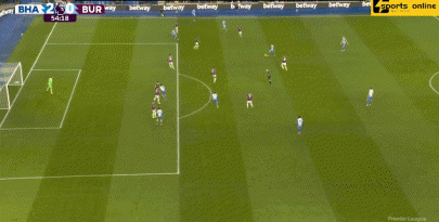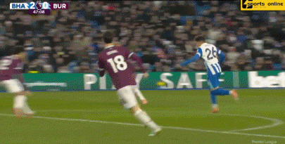 第47分钟,伯恩利后场出球失实,阿亚里得球趟入禁区右侧打远角到手,布莱顿2-0伯恩利。↓