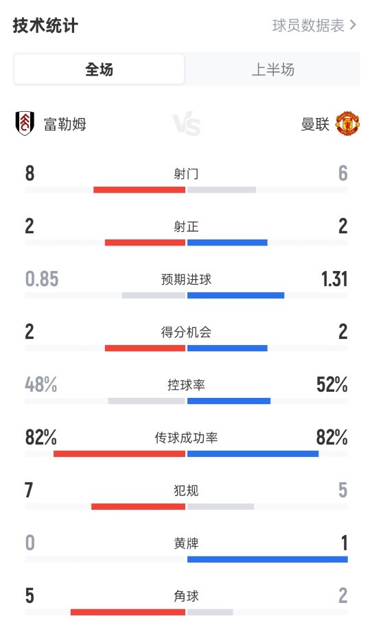 8月25日讯 英超第2轮,富勒姆半场0-0曼联。