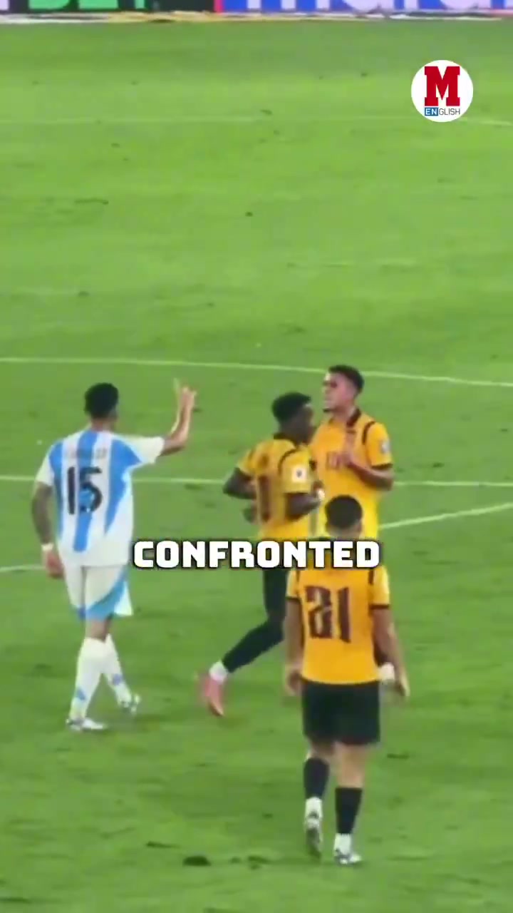 据《马卡报》报谈,阿根廷边锋冈萨雷斯与厄瓜多尔中场派斯在场上发生打破,冈萨雷斯指向球衣上的全国杯冠军徽章,而派斯则以1-0的手势回复。