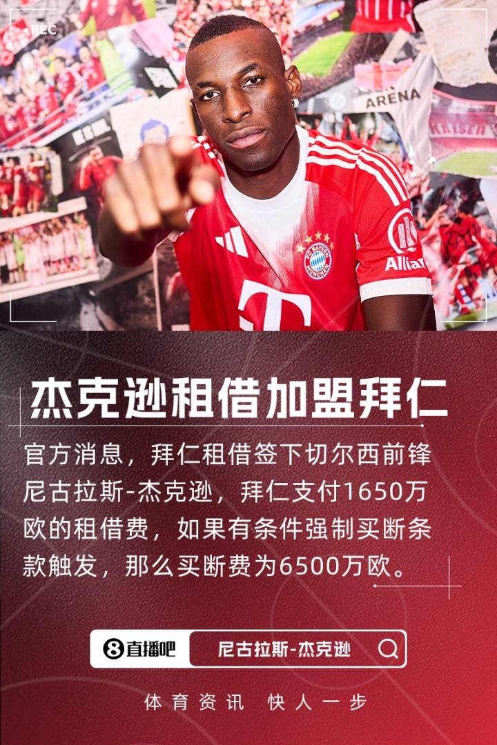 “即使在昨天的贫窭情况下,杰克逊从未发达出担忧或疑虑,他仅仅说——我思留在这里,为拜仁效率。这令东谈主印象深入,咱们在幕后逸以待劳完成了这笔交往。”